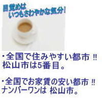 | 高額のローンを組まなくても、毎月お家賃の支払いで分譲マンションのような生活が可能です。 お探しのお部屋は見つかりましたか ? 愛媛県松山市桑原にあります。 ココ「キャッスル蔵乃前」で新しい生活を始めませんか。 |
